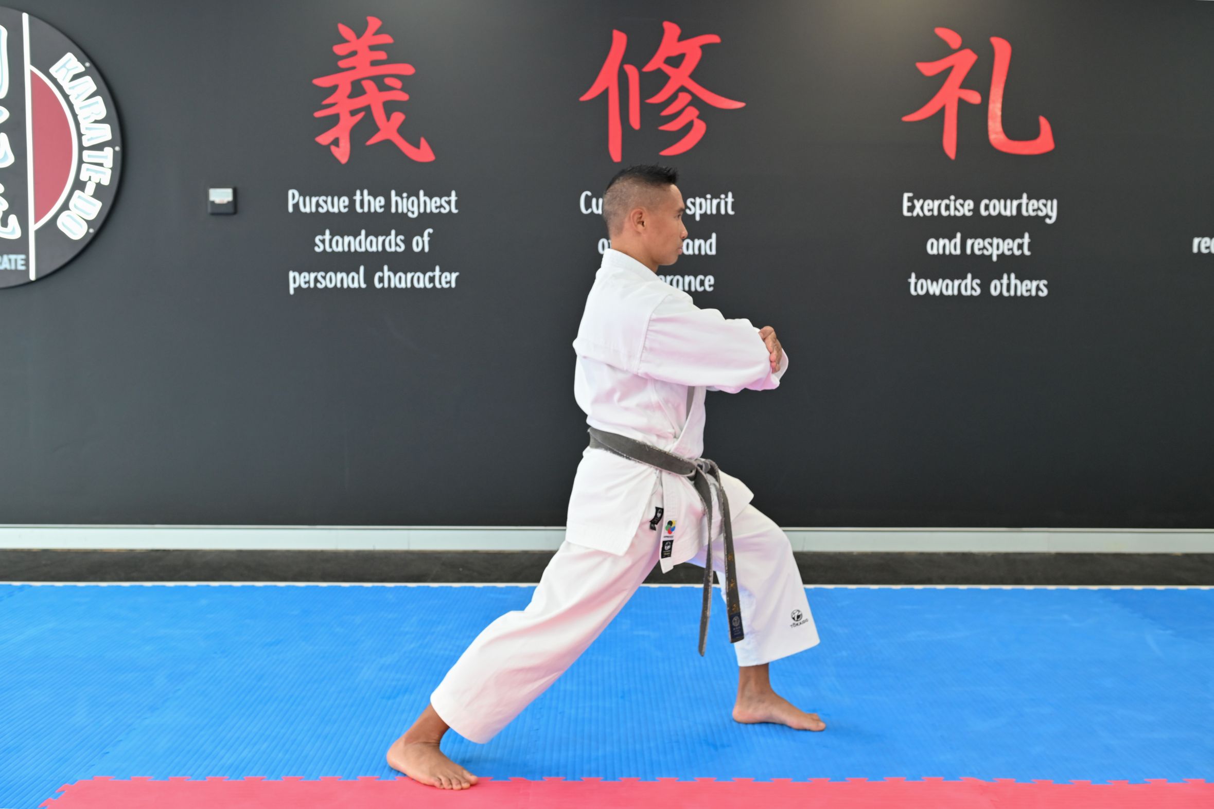 While GKR’s two Sandan kata (Seisan and Sochin) both hail from Naha in Okinawa and were once quite similar, the way they are practised today sees them vastly different in style and technique. Sochin is a typical Shuri-te, Tomari-te (or later Shotokan) style kata with long, deep stances (primarily using fudo-datchi – immovable stance).